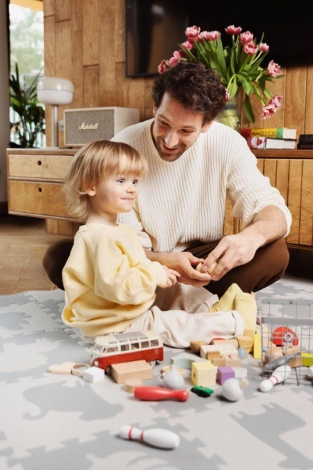 Underlaget giver mange muligheder for leg – det kan bruges som et klassisk puslespil til at skabe rumlige figurer. Derudover kan 3D-elementerne bruges som selvstændigt legetøj.
