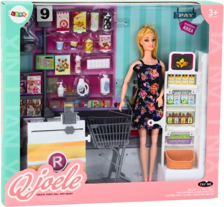 Dette sjove og lærerige sæt tager børn med ind i indkøbsverdenen. En dukke i sødt tøj, butikshylde, indkøbskurv, kasseapparat og små dagligvarer gør det muligt at spille forskellige scenarier – fra at vælge varer til at betale ved kassen. Takket være bevægelige lemmer og håndled kan dukken nemt “gribe” varer og lægge dem i kurven.