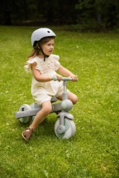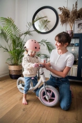Takket være 11 ventilationsåbninger er hjelmen meget åndbar, så hovedet ikke overophedes selv på varme dage. Et let justerhjul sammen med justerbare hageremme sikrer en præcis og stabil pasform i området 48–55 cm. Overholdelse af standarden EN-71 understreger sikkerhed og kvalitet.