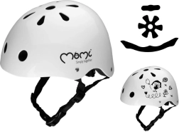 Hjelmen MoMi MIMI er designet til små sportsudøvere, der har brug for pålidelig beskyttelse i hverdagens eventyr. Den kombinerer en robust ABS-yderkalot med en indre EPS-skal for effektiv stødabsorption, mens den bløde skumpolstring øger komforten selv ved længere tids brug.