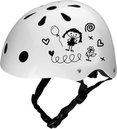 En ekstra bonus er muligheden for personlig dekoration – børn kan tegne på hjelmen med tuscher eller farveblyanter og skabe et unikt design. Maling/markeringer kan nemt vaskes af og ændres, så hjelmen følger barnets fantasi.