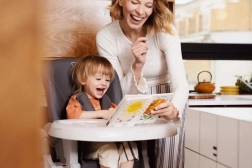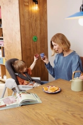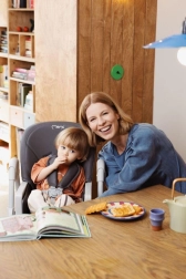 Højstolen MoMi GOJO har også en ekstra reducerende indsats til et mindre barn.