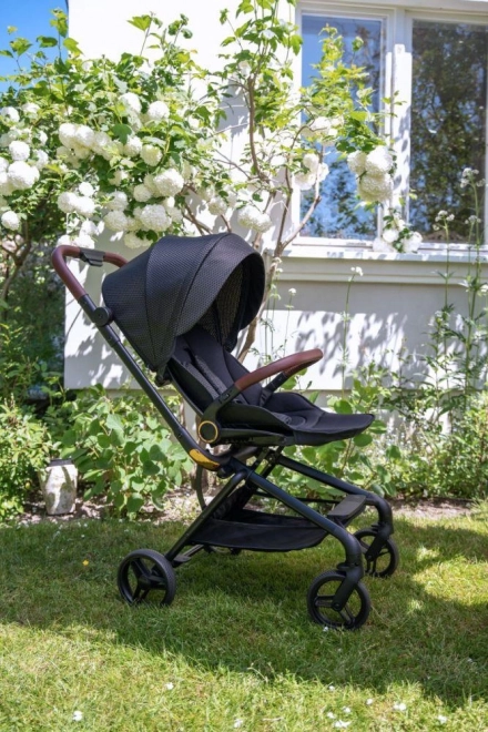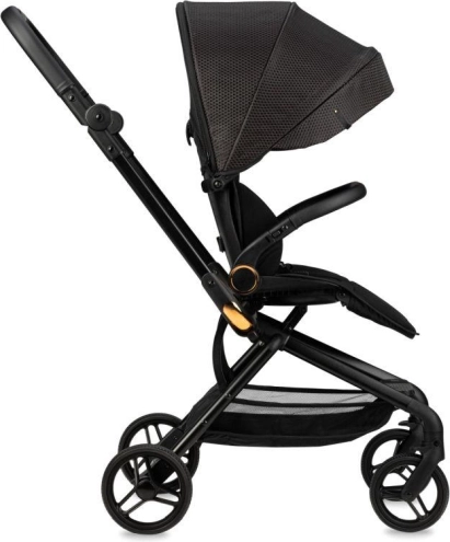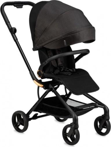 MoMi Adelle er en gennemtænkt sportsklapvogn, der kombinerer lav vægt, komfort og sikkerhed. Med det 360° drejelige sæde skifter du hurtigt mellem kørsel med eller mod retningen, mens affjedring på alle fire hjul med slangeløs EVA-skum giver en stille og glat tur selv på mere ujævnt underlag.