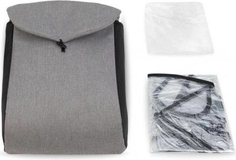 MoMi ESTELLE DAKAR leveres med et sæt utroligt praktisk tilbehør til alle årstider: regnslag, myggenet og matchende kørepose/fodpose.