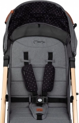 MoMi ESTELLE sørger for, at gåturen også er behagelig for mor. De smidige, affjedrede og punkteringssikre hjul gør manøvredygtigheden komfortabel. Den store kurv gør indkøb lettere, da du ikke behøver at bære tunge ting i hænderne, og alt, hvad du køber, passer under klapvognen. Klapvognen MoMi ESTELLE vil også overraske dig med sine praktiske egenskaber i sammenklappet tilstand, fordi den er lille, kompakt, kan opbevares lodret og har et håndtag til at skubbe den sammenklappede klapvogn.
