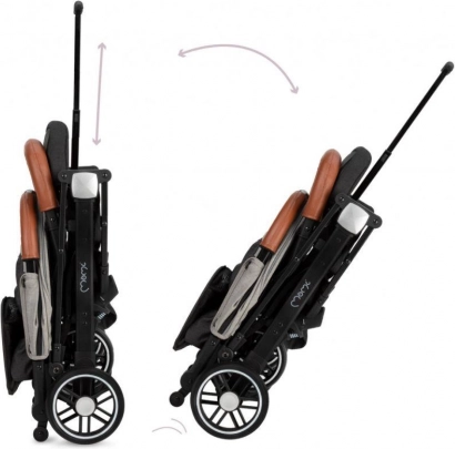 Fold klapvognen på et øjeblik, og takket være teleskophåndtaget kan du nemt skubbe eller trække den som en kuffert. Selvstående funktion sparer plads både hjemme og i bilen.