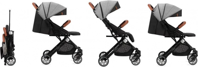 Takket være PU-hjul, der er modstandsdygtige over for punktering og affjedring på alle 4 hjul er klapvognen adræt og behagelig at manøvrere selv i bymiljø. Justerbart ryglæn og justerbar fodstøtte sikrer komfort både ved siddestilling og lur. Sikkerheden øges af 5-punktsseler, central fodbremse, dobbelt lås mod utilsigtet sammenklapning og reflekterende elementer. Betræk i økolæder på bøjlerne med blød skum er lette at rengøre og behagelige at holde om.