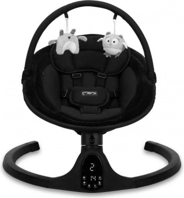 MoMi Kenani Onyx er en moderne elektrisk vugge til blid beroligelse og underholdning af babyen fra nyfødt. Den stabile aluminiums‑ og stålkonstruktion, det bløde plys-betræk og hovedpuden giver komfort, mens 5‑punkts seler og skridsikre fødder sørger for sikkerheden. Med Bluetooth kan du let afspille yndlingssange fra telefonen, og det overskuelige LCD‑display samt fjernbetjening gør daglig brug nemt.
