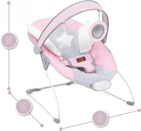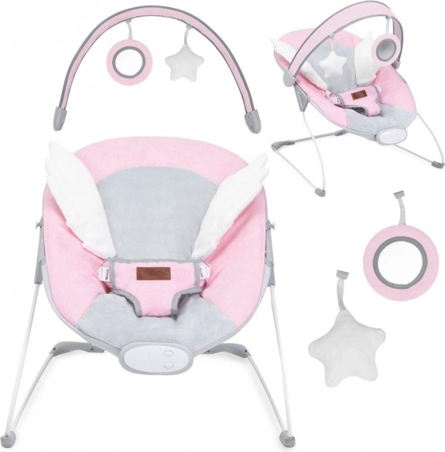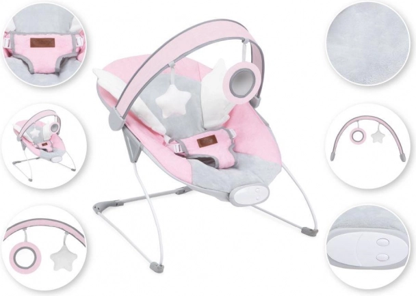 Den vibrerende liggestol MoMi TULI tilbyder uovertruffen komfort fra de første dage af dit barns liv. Dets design omfatter blide vinger og praktiske funktioner, så dit barn kan nyde rolige øjeblikke, og forældre kan få lidt hvile:
