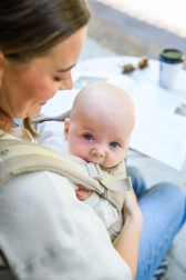 Det brede, justerbare panel opretholder den naturlige “M”-position og støtter korrekt runding af ryggen. Et sikkert valg til daglig bæring fra 3 måneder.