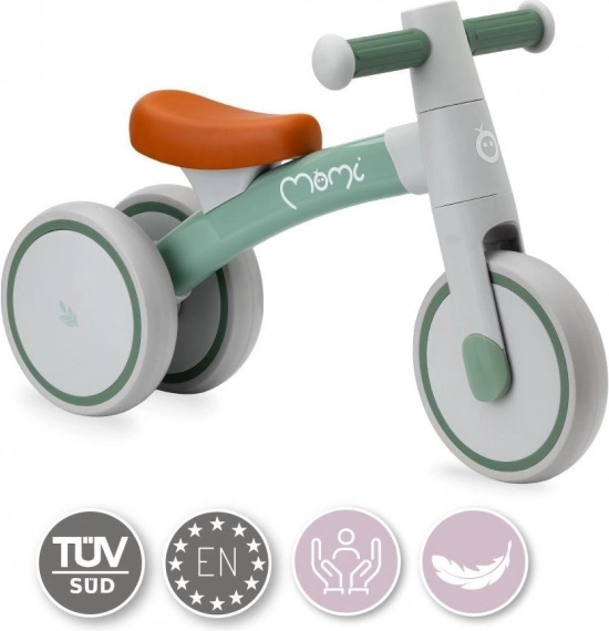 Løbecyklen MoMi TEDI er let og komfortabel, ideel til små sportsudøvere. Takket være de gulvsikre hjul kan den bruges både indendørs og udendørs.