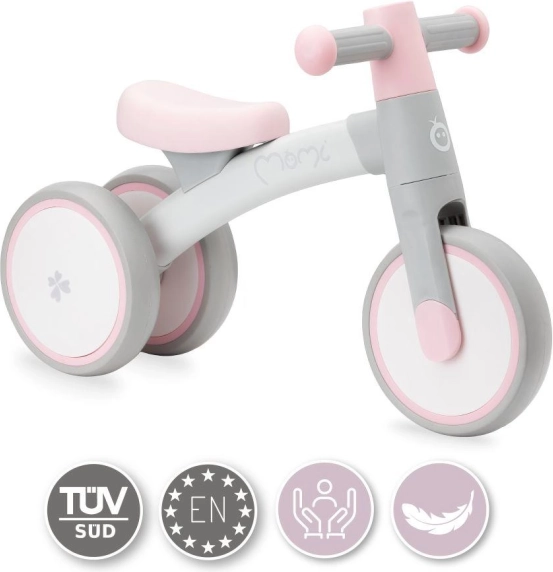 Løbecykel MoMi TEDI er sikker for de mindste med brede baghjul, der sikrer stabilitet.