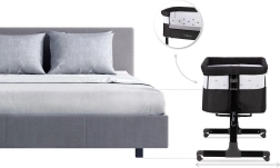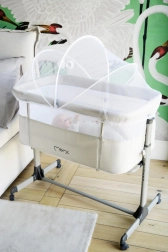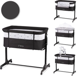 - Med den seks-trins højdejustering kan du indstille babysengen i den rette højde, så dit barn er tæt på dig, og du får maksimal komfort.