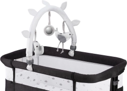 - Sættet indeholder en bøjle med legetøj, som effektivt stimulerer dit barns sanseudvikling. Støt dit barns udvikling og hjælp det med at opdage nye former og farver med det forskellige legetøj.