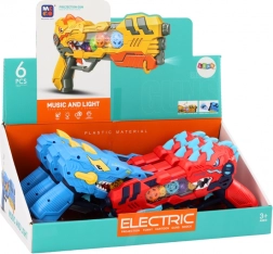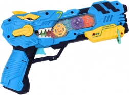 Oplev actionfyldt sjov med en dinosaurformet pistol, der kombinerer projektion af dinosaurer, lyseffekter og lydeffekter. Hvert tryk på aftrækkeren sætter et lysshow i gang med roterende, oplyste tandhjul og realistiske lyde.