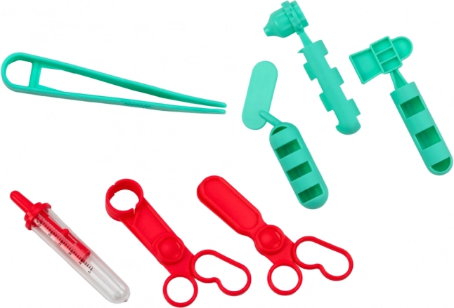 Sættet er pakket i en praktisk plastkuffert for nem opbevaring og transport og tilfører samtidig et element af autenticitet, der inspirerer børn til at lege doktor hvor som helst.