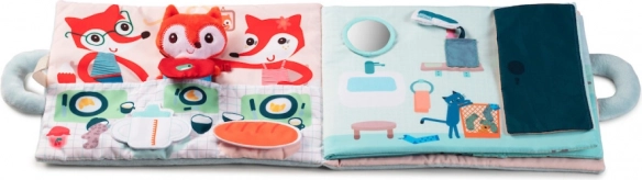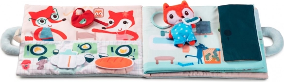 En lille rævefigur indbyder til interaktiv leg. Bogen er fremstillet af 100 % polyester, er let at holde og kan vaskes på skåneprogram ved 30 °C. Målene 28 × 22 cm gør den nem at håndtere både hjemme og på tur.