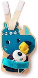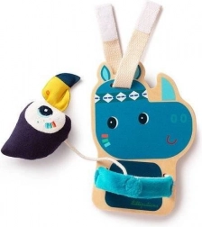 • Træ næsehorn Marius med en fastgjort blød, raslende tukan-legetøj for visuel og auditiv stimulans.