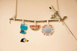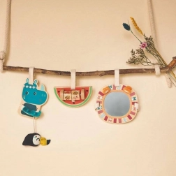 • Træspejl i ramme med motiv af Løven Jack, der fremkalder nysgerrighed og udgør en base for observationsevner.