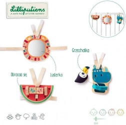 Opdag det magiske sæt af træophængslegetøj Næsehorn Marius fra mærket Lilliputiens, som er designet til at stimulere sanseudviklingen og finmotorikken hos dit barn.