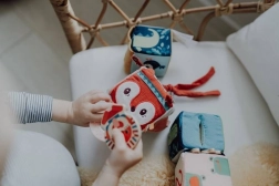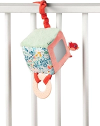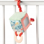 Terningen inkluderer et bidelegetøj fremstillet af EVA-materiale, som giver lindring ved tandspring og støtter den taktile udvikling.