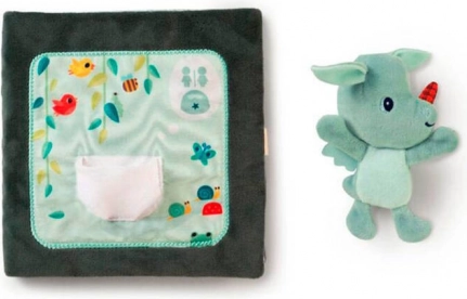 Blød og sikker tekstilbog med en mini-krammer, dragen JOE, inviterer børn til at udforske verden bag “puk, puk”-låger. Farverige illustrationer, flapper og forskellige teksturer udvikler finmotorik og sanser; der er også en knitrende forside og et foto-vindue til et yndlingsbillede. Bogen kan vaskes ved 30 °C, er sikker fra 0+ og ideel til børn fra 18 m+.