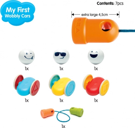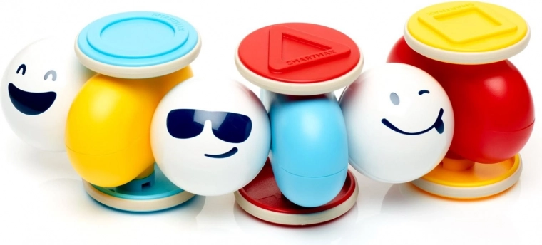 Metalkugler med trykte ansigter og forskellige bilformer indbyder til at skabe vaklende, sjove opstillinger, som udvikler koordination og tålmodighed.