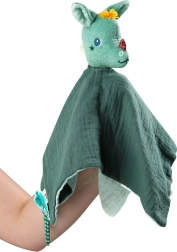 Krammeklud Drage Joe er designet til at give maksimal komfort og tryghed til børn under søvn. Den er fremstillet af økologisk bomuld og dens fyld er af 100% polyester, hvilket sikrer blødhed og holdbarhed. Med denne plysfigur kan børnene lege som med en marionet, hvilket bringer sjove muligheder for at fortælle historier. Krammekluden måler 32 x 32 cm og kan nemt vaskes i maskine på skånevask ved 30°C.