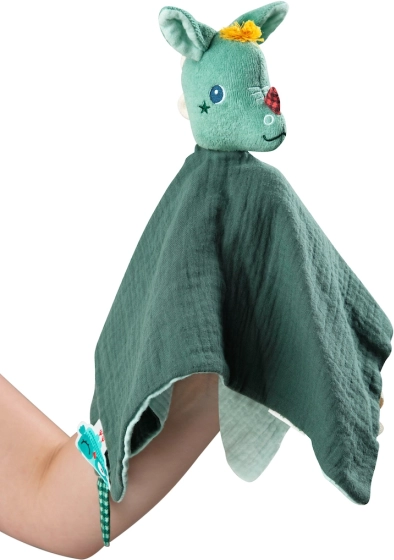 Kan bruges som en sutteholder og dermed tilbyde endnu større praktisk anvendelse. Før det gives til barnet, er det nødvendigt at fjerne alle plastikbeslag, etiketter og emballage. Denne emballage er ikke et legetøj og skal fjernes fra børns rækkevidde. Produktet opfylder sikkerhedsstandarderne ASTM F963/CPSIA.