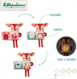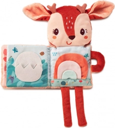 Den interaktive, bløde krammebog med figuren hjorten Stella fra Lilliputiens er den ideelle første “læsning” for babyer fra 3 måneder. Den kombinerer en plyslegetøj og en stofbog med en overraskelse på hver side: knitrelyde, rangle, bøjeligt spejl og endda et element, der lyser i mørke. Den udvikler syn, hørelse og følesans, fremmer ro og bygger kærlighed til bøger.