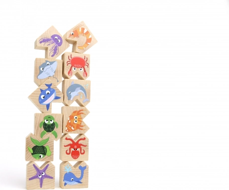 Balancespillet hjælper med at udvikle børns motoriske færdigheder og kreativitet gennem legende stabling af havdyr.