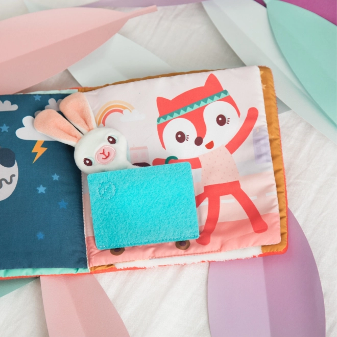 Tekstilbog med aktiviteter til børn fra 12 måneder fortæller fine historier om hjorten Stella og hendes venner. Den understøtter fantasi og empati, er lavet af bløde, kvalitetsmaterialer, måler 16 × 16 × 3 cm og er maskinvaskbar ved 30 °C (skåneprogram).