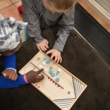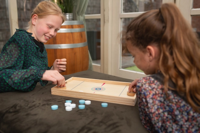 Bordhockey og matematisk spil for børn giver dobbelt så meget sjov! I den første del af spillet skal to spillere skyde deres jetoner ind på målområdet. I den anden del dyster de i bordhockey, indtil en af spillerne når syv mål. Begge spil er designet til at styrke hånd-øje-koordination og udvikle numeriske færdigheder.