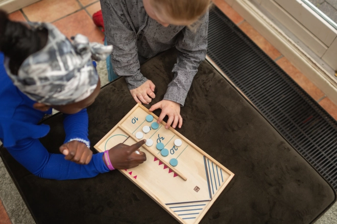 Spillet med jetoner og tal er perfekt til at udvikle børns numeriske evner og lærer dem grundlæggende regning på en legende måde.