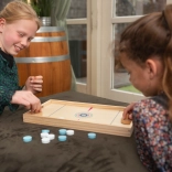 Takket være det robuste og bærbare design kan du tage spillet med overalt – i skole, på picnic eller til enhver anden lejlighed, hvor du vil have det sjovt. Indeholder en dobbeltsidet spilleplade, 10 jetoner og 2 skydere, hvilket garanterer timevis af underholdning.
