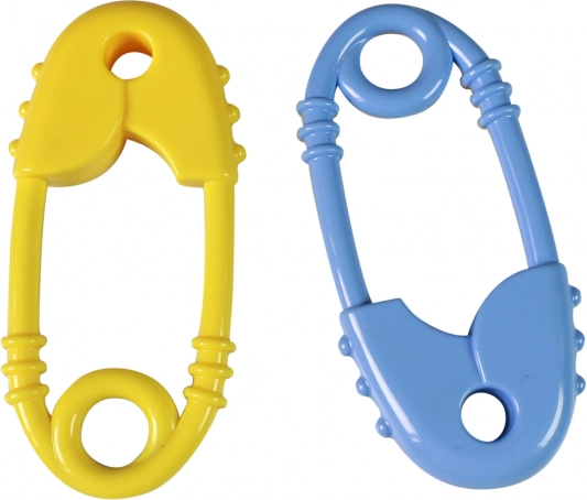 Sjov baby-rangle og bidering formet som en sikkerhedsnål, der støtter finmotorikken og giver lindring under tandfrembrud. Takket være den teksturerede overflade, sikre afrundede kanter og let greb kan børn håndtere den uden besvær. Farvemix leveres efter aktuel lagerstatus.