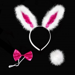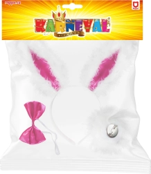Et charmerende karnevalssæt til et kanin-look til fester, fotoshoots og temabegivenheder. Indeholder et hårbånd med kaninører, en lyserød butterfly på elastik og en påspændelig hale. Let, behageligt og klar til brug med det samme – det perfekte tilbehør til kostumer, fester og karneval.