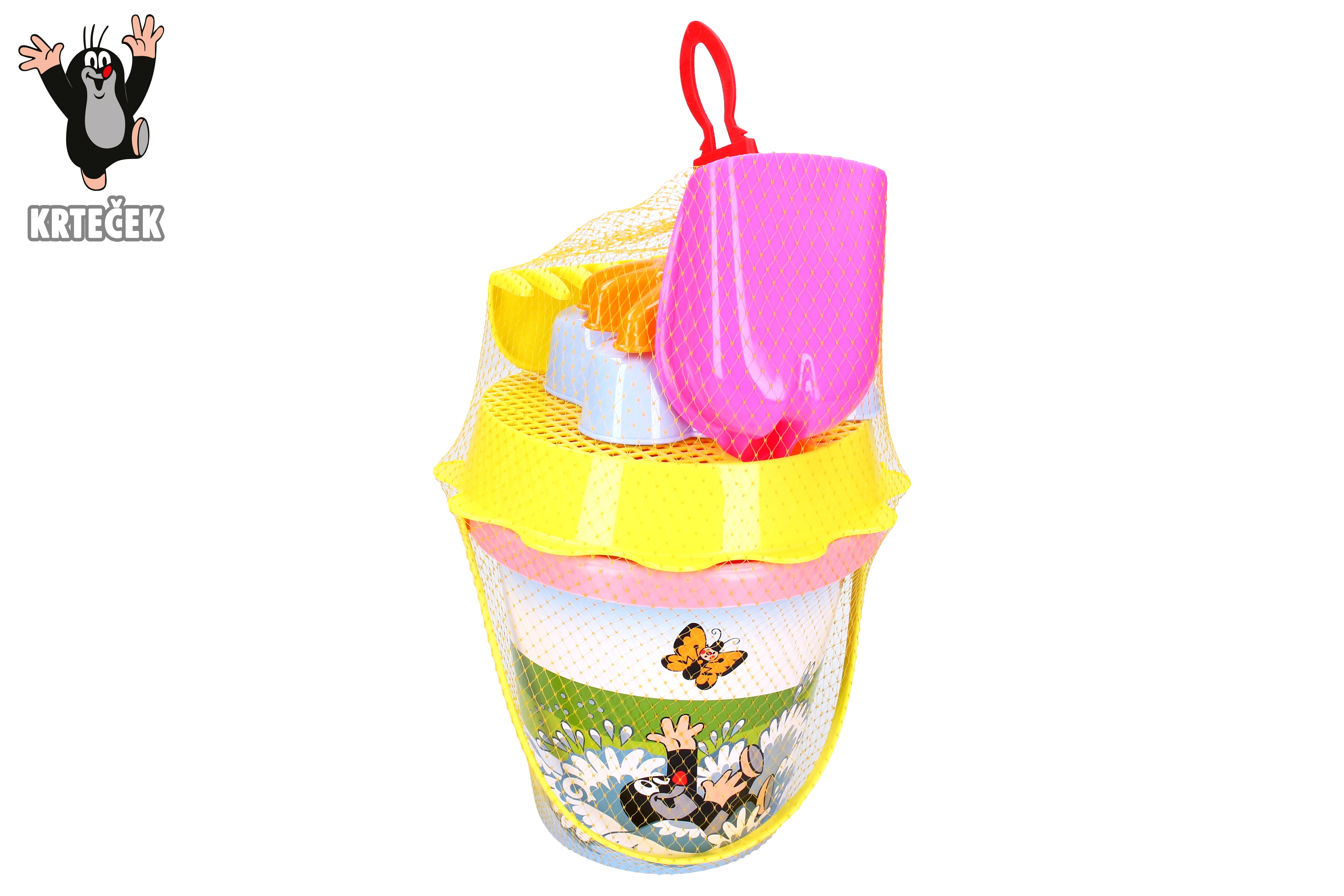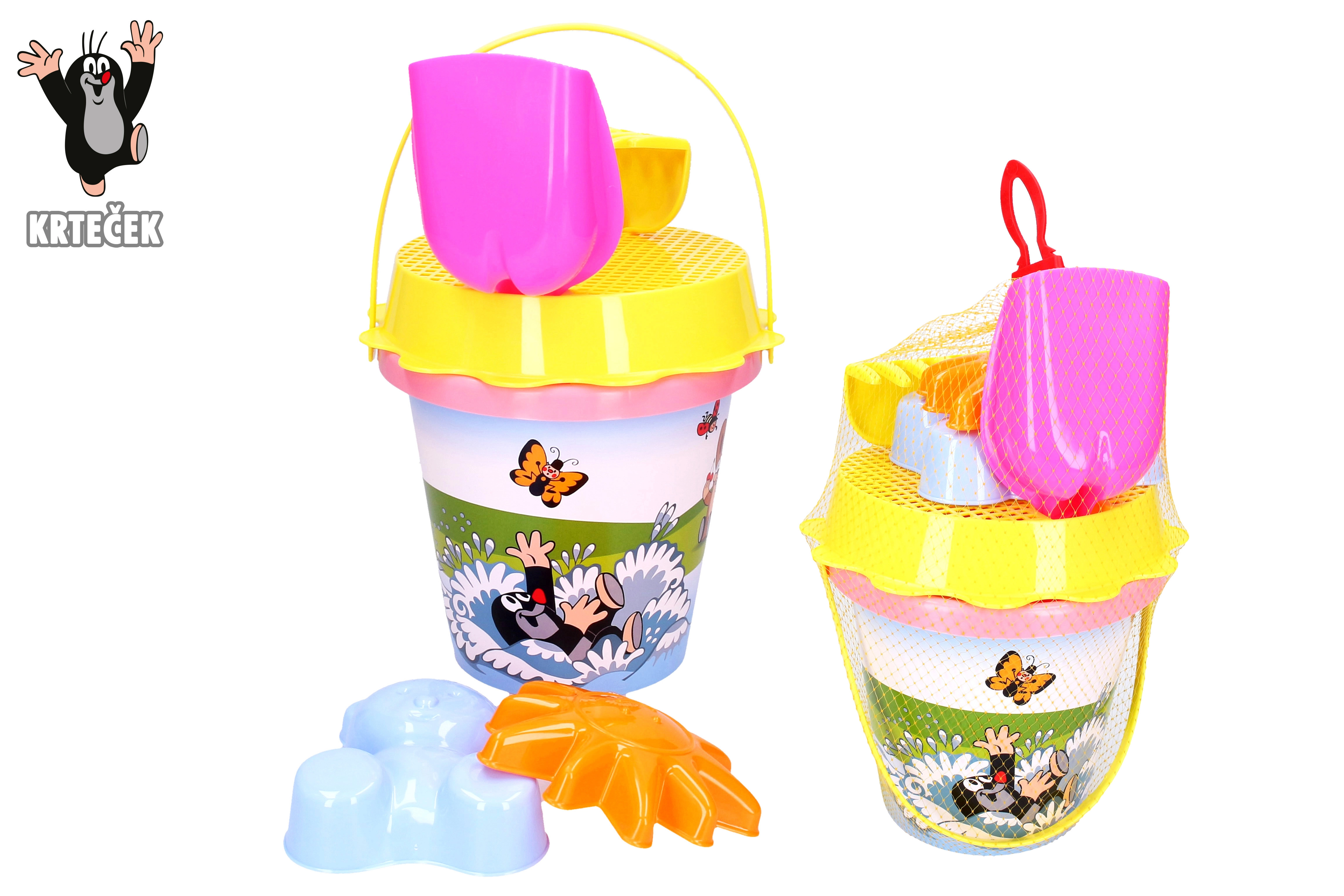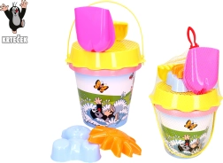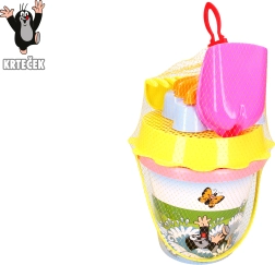 At bygge slotte og lave sandkager elsker næsten hvert lille barn. Med dette pink sæt med motiv af Muldvarpen bliver legen en fornøjelse! Pakkens indhold: spand 1,5 l si skovl rive 2 forme Anbefalet alder: fra 3 år