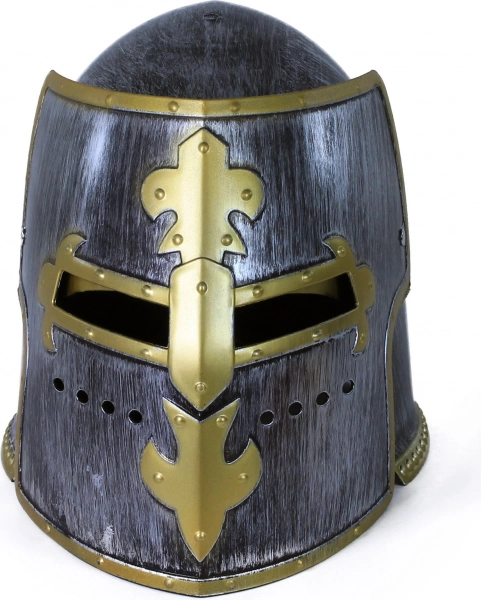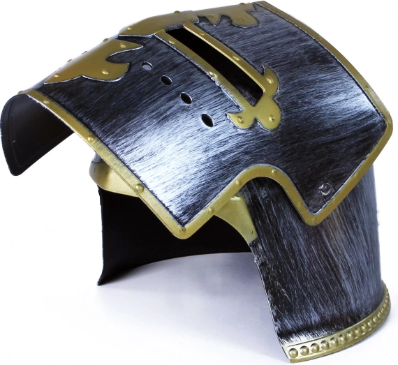 Stilfuld tempelridderhjelm med åbent visir, som er det ideelle tilbehør til en ridderkostume. Fremstillet af PVC for nem brug og et flot udseende.