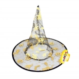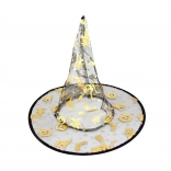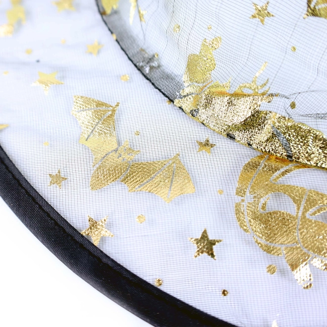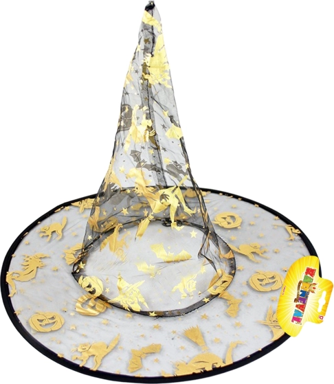 Giv dit barn en uforglemmelig oplevelse med denne heksehat, som bringer et magisk udtryk til enhver Halloween-fest. Hatten er lavet af let sort net og pyntet med gyldne motiver, der skinner under enhver belysning.