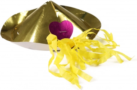 I pakken finder du en kombination af kegleformede hatte, varianter med skygge og dekorationer med crepede kvaster for en mere farverig udsmykning.