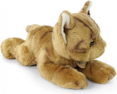 Blød liggende plysset kat 30 cm med ECO-FRIENDLY fyldning af PET-flasker. Realistisk udførelse, håndlavede detaljer, egnet fra 0+. Perfekt krammeven til børn.