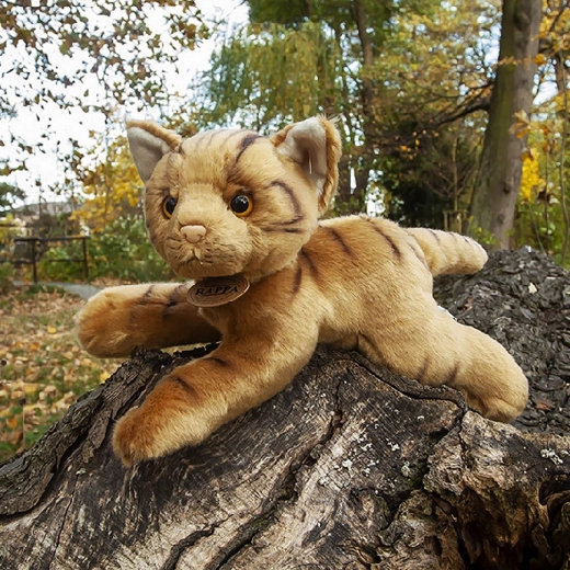 Sød plysset kat på 30 cm lavet af højkvalitets plys med realistiske detaljer, håndlavet finish og miljøvenlig fyldning af genanvendte PET-flasker. Blød, krammevenlig og sikker selv for de allermindste.