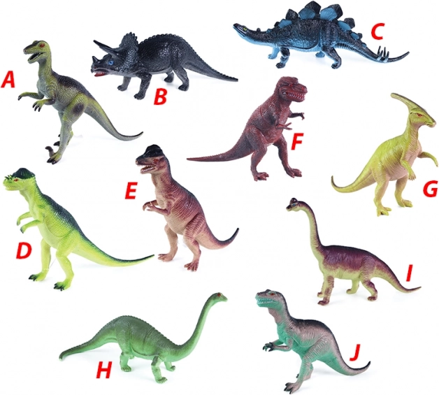 Saetten indeholder ti forskellige dinosaurusarter i forskellige farver, der vil imponere hvert eneste barn med deres mangfoldighed.