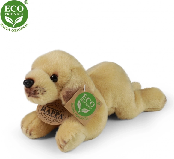 Berig din samling af plysdyr med denne liggende plys hund, der ikke kun er dejlig, men også skånsom mod vores planet. Takket være genbrugte PET-flasker, der bruges som fyld, opfylder denne hund alle moderne økologiske standarder. Vælg mellem forskellige racer efter din smag.