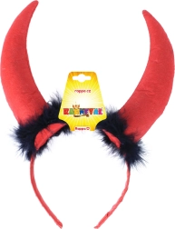 Markante djævlerhorn i maxi-størrelse på en satinbøjle af filt, pyntet med bløde fjer. Et skønt tilbehør til både djævle- og djævlekostumer – behagelig at have på, øjeblikkelig effekt og stilfuldt look.