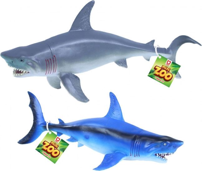 Plastisk haj i størrelsen 34 cm, fås i to forskellige varianter. Ideel til børneleg og som samlerobjekt.