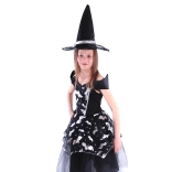 Dette magiske heksekostume er det ideelle valg for enhver lille dame, der vil forvandle sig til en stilfuld heks! Kostumet inkluderer en sort kjole med flagermusmotiver, sølvelementer og et fyldigt skørt, som giver den rette mængde elegance og mystik.