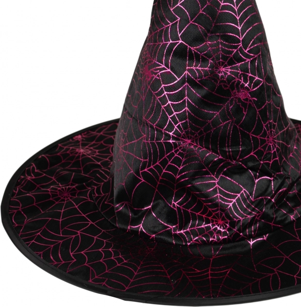 Hatten har sort farve med strålende lilla spindelvæv, hvilket gør den til det ideelle tilbehør til ethvert uhyggeligt kostume.