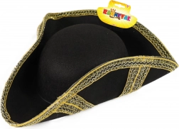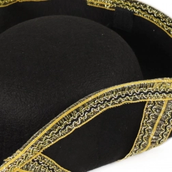 Denne sorte tricorn er inspireret af klassisk maritim stil og løfter straks ethvert piratoutfit. Takket være den gyldne kant ser den elegant og samtidig robust ud, så den egner sig til gentagen brug ved forskellige begivenheder. Beregnet til voksne (alder 14+).